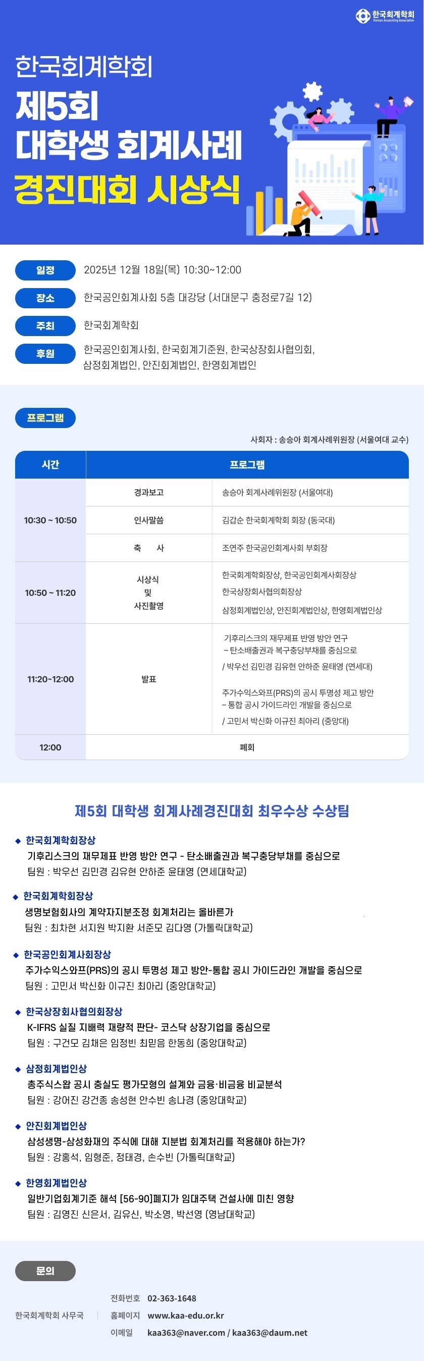 • 제목 제5회 대학생 회계사례 경진대회 (12/18(목) 10:30 한국공인회계사회)