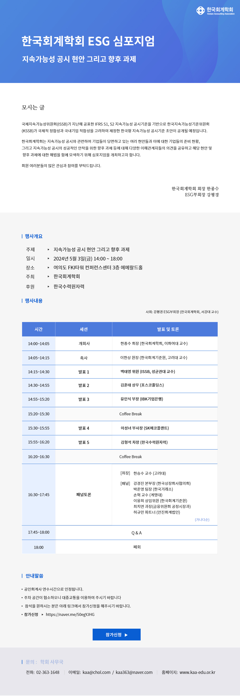 • 제목 ESG 심포지엄 "지속가능성 공시 현안 그리고 향후 과제" (5/3(금) 오후2시 FKI타워)